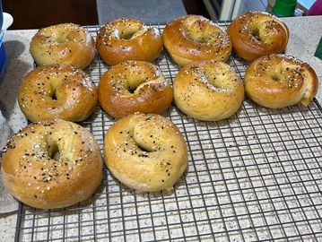 Hand-rolled bagels with fresh toppings of sesame, poppy seed and garlic.