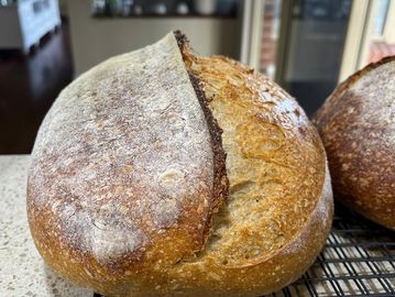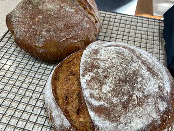 A delicious sourdough made with rye starter, using a combination of white and wholemeal flour.