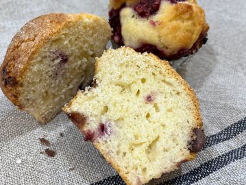 Soft, tasty muffins with whole fruit and chunks of dark chocolate.
